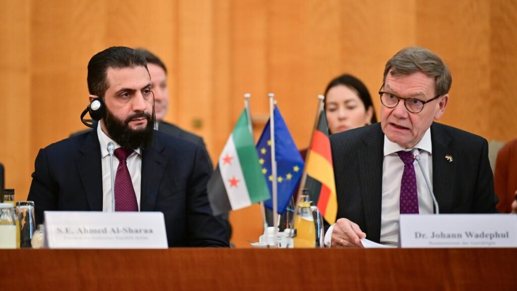 - حوالي 14:00: عقد مؤتمر صحفي مشترك بين ميرتس والشرع (تم بثه مباشرة عبر وسائل إعلام ألمانية مثل ZEIT).