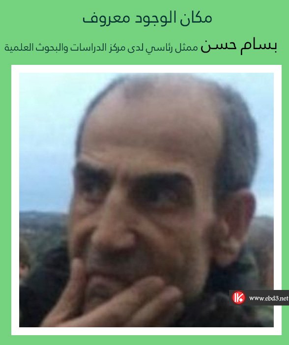 بسام حسن، لواء سابق، شغل منصب مستشار رئاسي للشؤون الاستراتيجية. كما عُيّن ممثلاً رئاسياً لدى مركز الدراسات والبحوث العلمية، وهي جهة متورطة في برنامج الأسلحة الكيميائية السوري. وأصدرت السلطات الفرنسية مذكرات اعتقال دولية بحق السيد حسن بتهمة التواطؤ في ارتكاب جرائم ضد الإنسانية وجرائم حرب، بما في ذلك دوره في الهجمات الكيميائية على الغوطة ودوما.