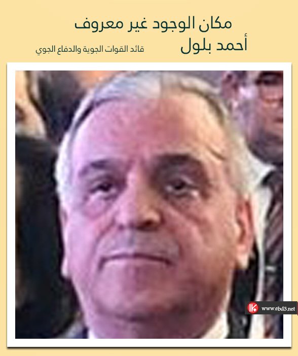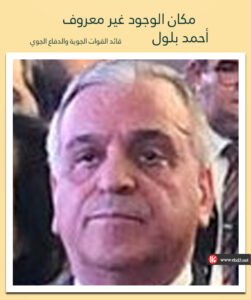 أحمد بلول، لواء سابق وقائد سابق للقوات الجوية والدفاع الجوي، شغل هذا المنصب من عام 2012 حتى تقاعده في عام 2021. كان السيد بلول مسؤولاً عن الإشراف على جميع العمليات الجوية السورية، بما في ذلك التنسيق مع سلاح الجو الروسي وتنفيذ غارات جوية على مناطق مدنية، من ضمنها مستشفيات. وفي هذا السياق، كان مسؤولاً عن استخدام الأسلحة الكيميائية في هجمات ضد المدنيين، من بينها هجوم خان شيخون عام 2017. كما قاد سلاح الجو خلال هجوم دوما الكيميائي عام 2018، حيث أُلقي غاز السارين على مدنيين كانوا يحتمون في الأقبية.