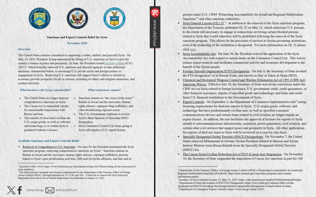 كان ترامب قد علّق بالفعل بعض العقوبات الأساسية المفروضة بموجب “قانون قيصر لحماية المدنيين في سوريا” لمدة ستة أشهر، غير أن الإلغاء الكامل لا يزال غير محسوم وسط معارضة مشرعين متحفظين على منح الشرع إعفاءً غير مشروط.