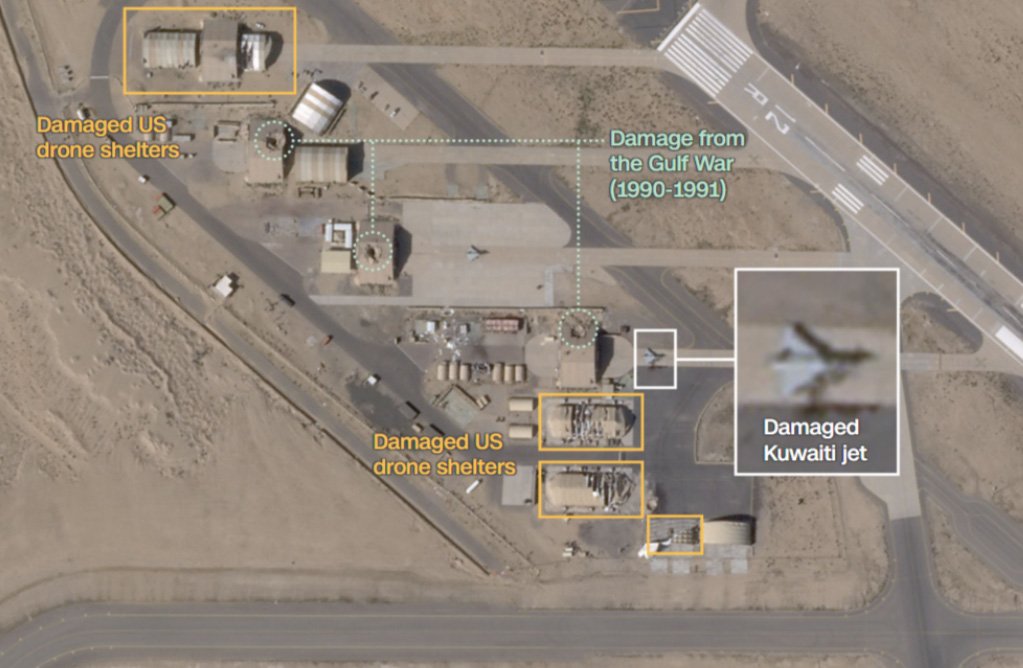 - السعودية: سفارة أمريكية في الرياض (هجوم بطائرتين مسيرتين، حريق محدود، أضرار طفيفة)، قواعد عسكرية أمريكية في الشرقية (اعتراض صواريخ). الخسائر: إصابات طفيفة. رد السعودية: تأكيد الدعم للدفاع المشترك، إغلاق السفارة الإيرانية.