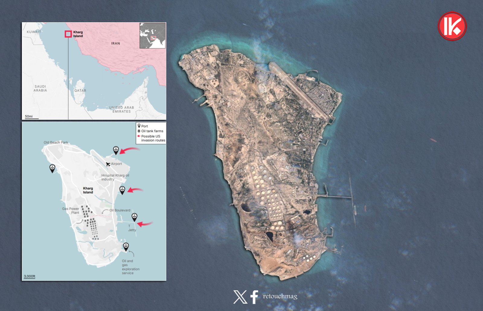تدرس إدارة الرئيس ترامب فعلياً خيار احتلال بري محدود أو حصار بحري لجزيرة خارك بهدف ممارسة ضغط اقتصادي مباشر على إيران وإجبارها على إعادة فتح مضيق هرمز، الذي يمر منه نحو 21% من تجارة النفط العالمية. الجزيرة تبعد 15-25 كم فقط عن الساحل الإيراني، وتتعامل مع نحو 90% من صادرات النفط الإيرانية (1.5-1.7 مليون برميل يومياً).