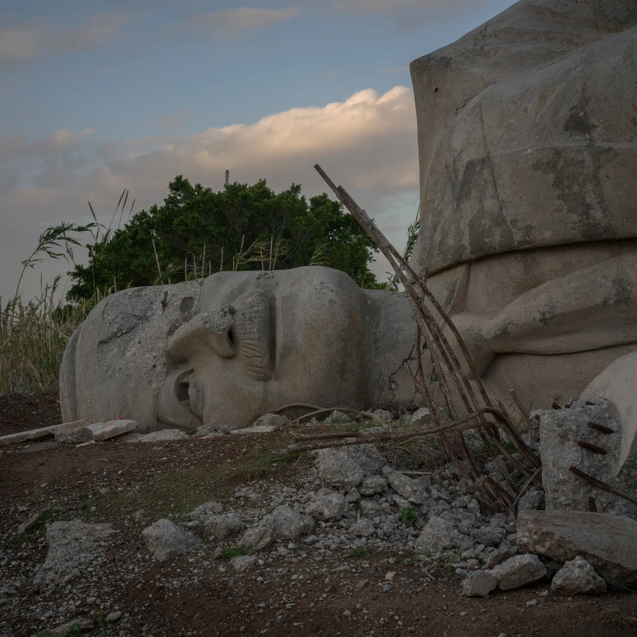 تتحرك قوافل من القوات الروسية بشكل منتظم على الطريق السريع المحلي الممتد على طول الساحل في شمال سوريا، في طريقها إلى قاعدة جوية قريبة لا تزال روسيا تسيطر عليها. وعلى مقربة من هناك، ينتصب تمثال مقلوب للمقبور حافظ أسد ، والد بشار أسد . وقد انكسر أحد ذراعي التمثال، فيما غُرس وجهه الضخم في الوحل.