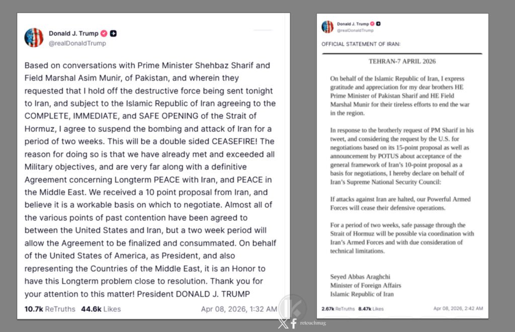 جاء التراجع بعد تدخل باكستاني مكثف. رئيس الوزراء شهباز شريف طلب تمديداً لأسبوعين لإتاحة المجال للمفاوضات. إيران ردت بورقة رسمية تحتوي على 10 نقاط، وصفها الجانب الأمريكي بأنها “أساس قابل للتفاوض”. الورقة تشمل رفعاً جزئياً للعقوبات، ضمانات أمنية، وبروتوكولاً آمناً للملاحة في هرمز. إيران قبلت الهدنة المؤقتة، لكنها أكدت رسمياً أنها “لا تعني نهاية الحرب”، وأن المفاوضات ستبدأ في إسلام آباد يوم الجمعة.