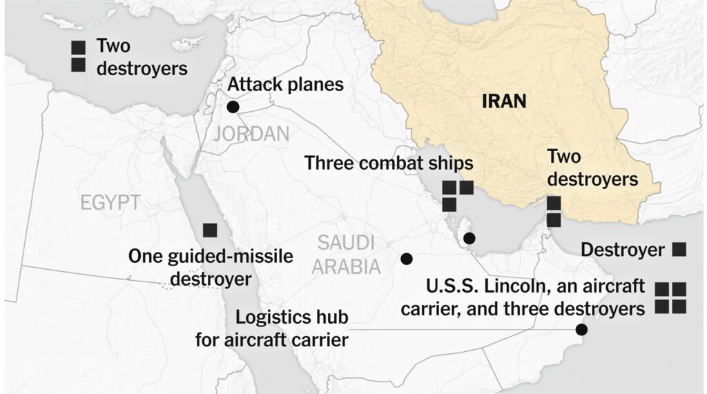 أفادت صحيفة “فاينانشال تايمز” بأن الولايات المتحدة حشدت في الشرق الأوسط 16 قطعة حربية وما يصل إلى 40 ألف عسكري، إضافة إلى مئات الطائرات.