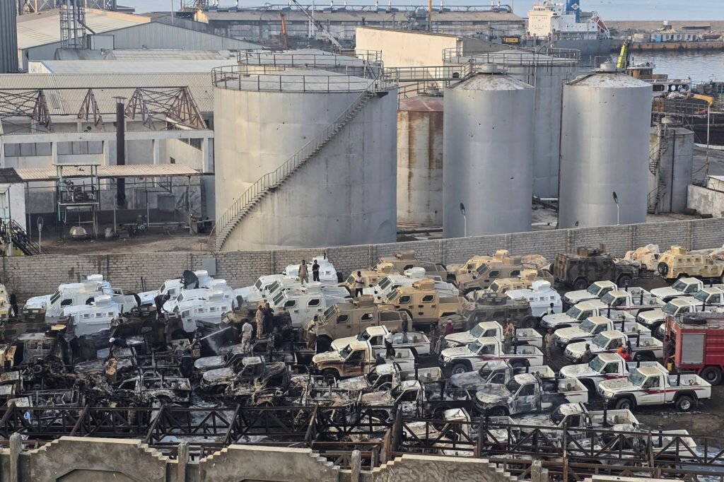 التحالف ينشر فيديو لاستهداف الأسلحة والعربات القتالية في ميناء المكلا